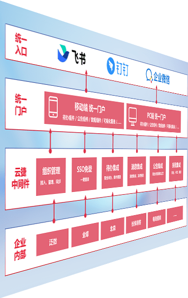 对协作平台提供支持服务,,,,支持企业应用与协作平台对接,,,包含组织同步、、、、消息集成、、待办集成等。。支持目前主流的协作平台:钉钉、、、、企微和飞书。。。